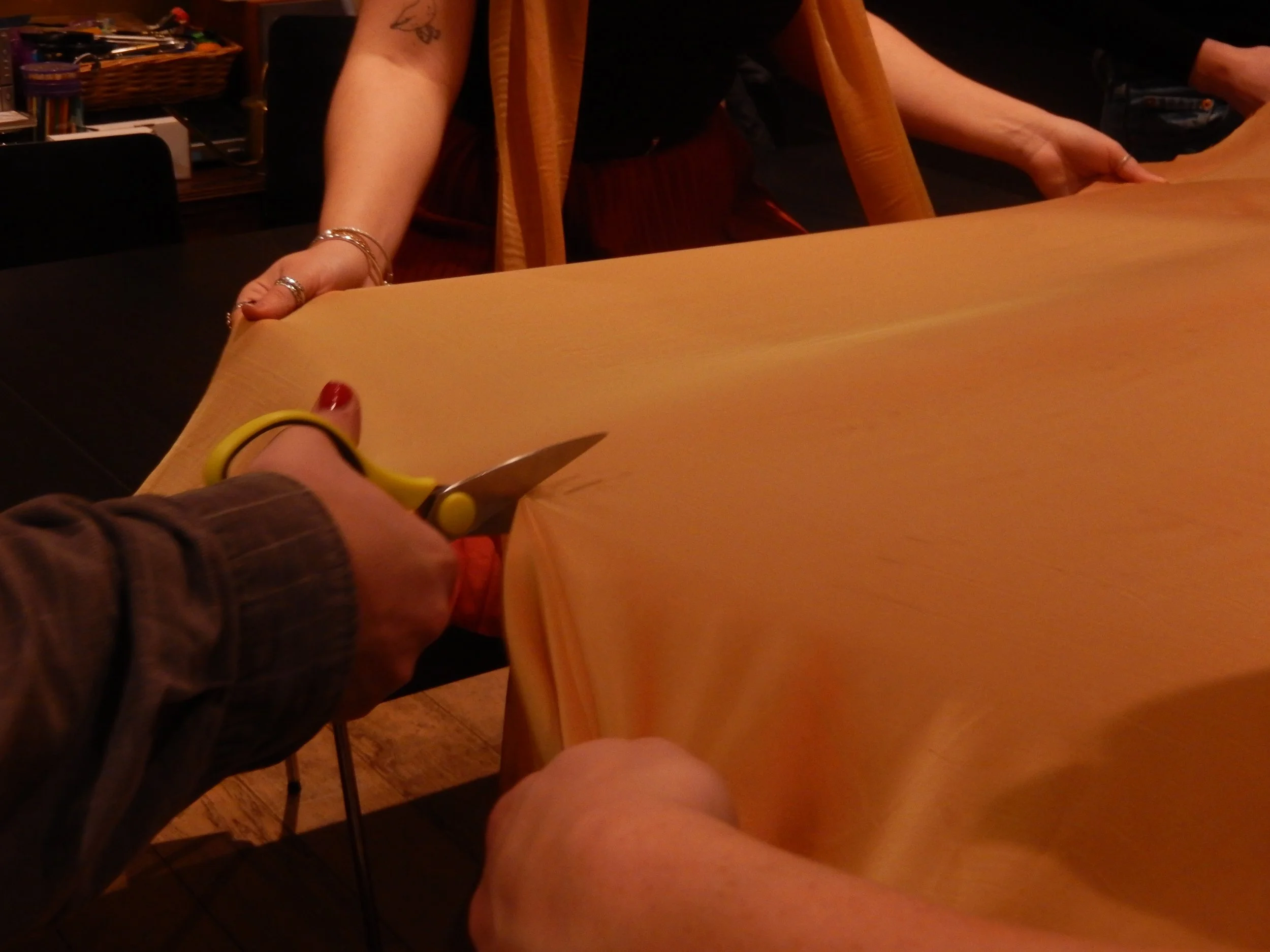 What was funny as well was the way that we were working collaboratively. Someone can very easily cut a piece of fabric by themselves, but we chose to do it as a big group with everyone holding the fabric and then each of us taking turns with the scissors. We really put making it together into every literal thing.